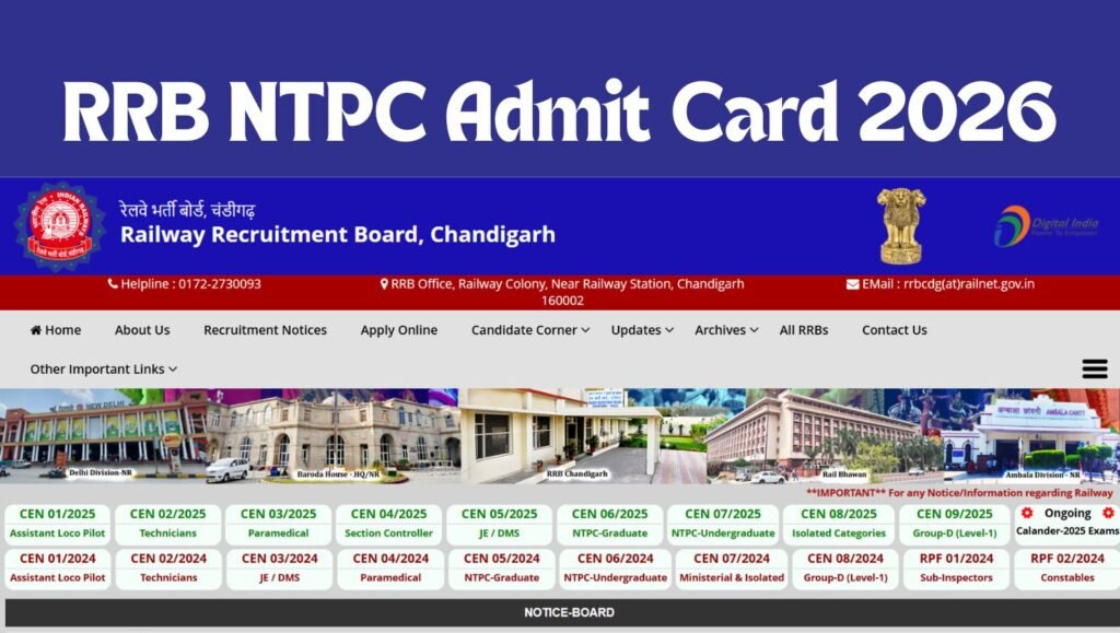 The RRB NTPC CBT 1 Admit Card 2026 has been officially released for candidates scheduled to appear on 19 March 2026. The Railway Recruitment Board (RRB) has activated the hall ticket download link on its regional websites, allowing applicants to access their admit cards using their registration details. This is an important update for lakhs of candidates who have applied for Non-Technical Popular Categories (NTPC) posts in Indian Railways.